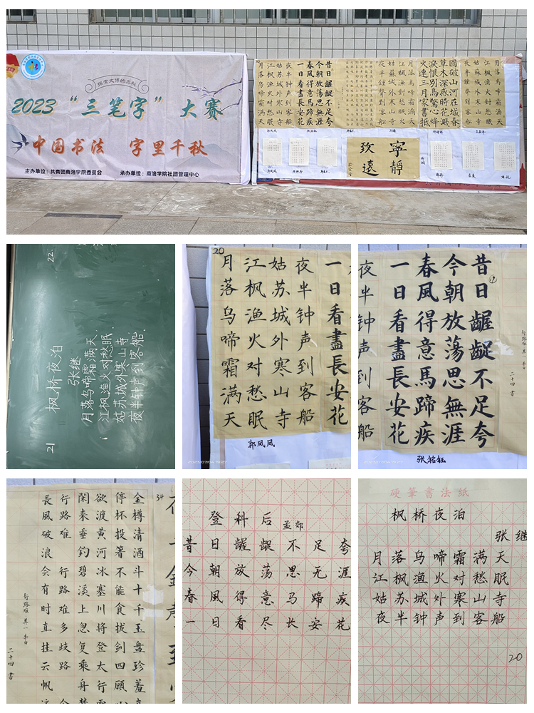 本次大賽自6月初開始,面向全校學生,從前期報名、動員、院級初賽,到校級決賽歷時近一個月,共有600余人參加初賽,60人進入校級決賽。決賽分為鋼筆組、粉筆組和毛筆組三個賽道。參賽題目、內(nèi)容均選自我國各類優(yōu)秀古詩詞。