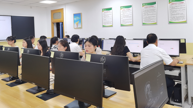 姚馨一行實地考察了我校省級心理健康教育中心,參觀了解了健康學院市級智慧心理研究與服務(wù)中心建設(shè)情況。在專業(yè)老師的指導下,體驗了認知神經(jīng)心理實驗室、師范技能實訓室相關(guān)心理訓練器材設(shè)備,部分陪同人員還完成了首次“心理體檢”。