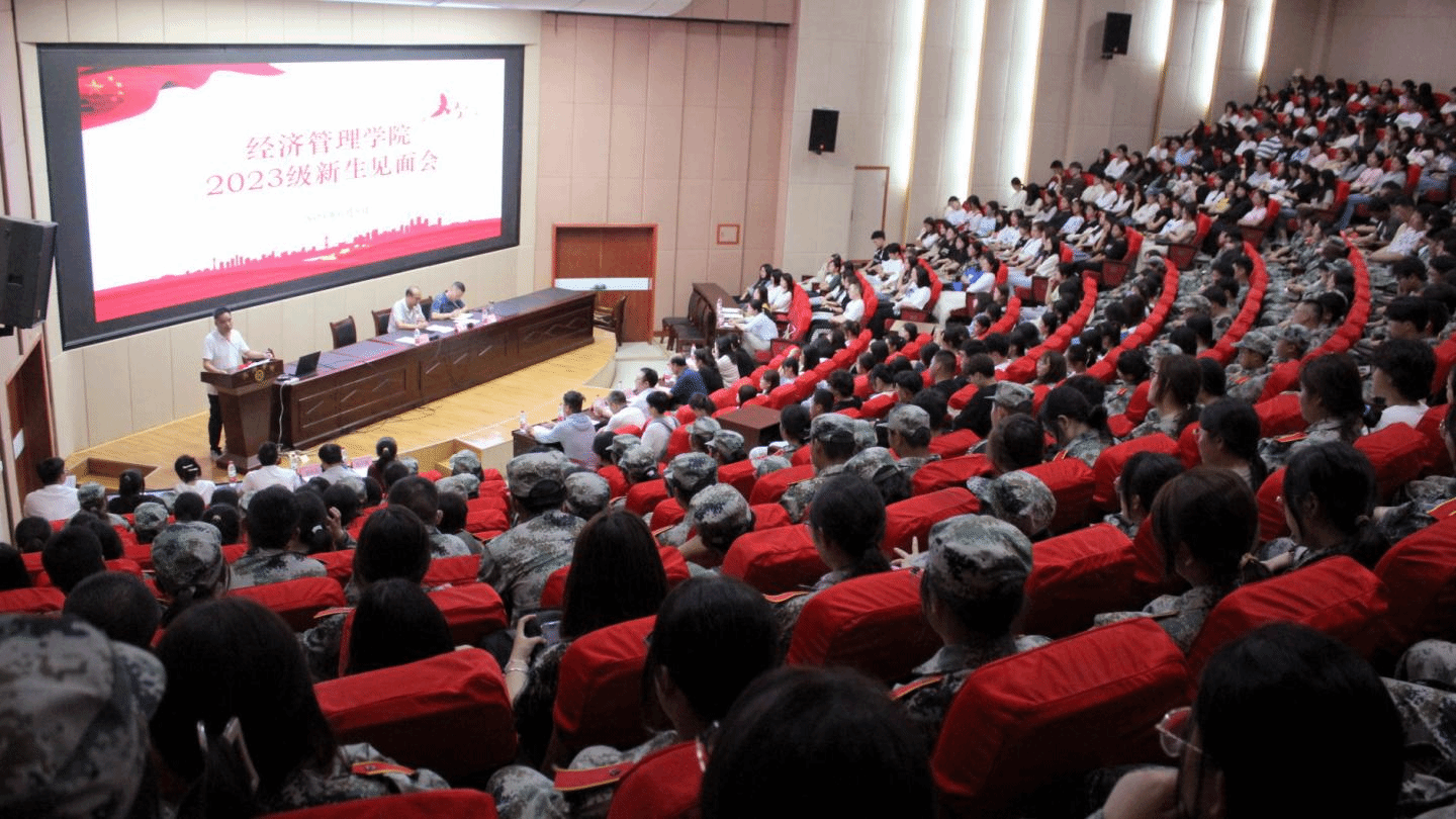 為使2023級全體新生對經(jīng)濟(jì)管理學(xué)院有更全面的了解,幫助新生更快地融入校園生活,在新生軍訓(xùn)結(jié)束之際,經(jīng)濟(jì)管理學(xué)院在圖書館二樓報(bào)告廳舉行2023級新生見面會。學(xué)院黨政領(lǐng)導(dǎo)班子、科級以上干部、各系(部)主任,全體輔導(dǎo)員以及2023級430余名新生參會。見面會由學(xué)院黨委書記高擴(kuò)昌主持。