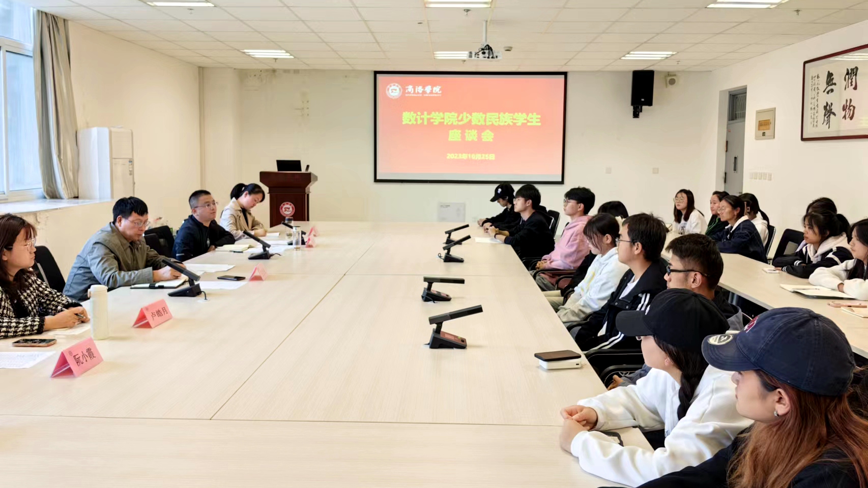 為鑄牢中華民族共同體意識(shí),深入了解少數(shù)民族學(xué)生在學(xué)習(xí)、生活、飲食等方面存在的問(wèn)題,10月25日,數(shù)計(jì)學(xué)院召開少數(shù)民族學(xué)生代表座談會(huì)。數(shù)計(jì)學(xué)院黨委書記廉明,副院長(zhǎng)王念良出席座談會(huì)。學(xué)院相關(guān)工作人員,各學(xué)生黨支部書記及2022級(jí)、2023級(jí)少數(shù)民族學(xué)生代表參加座談會(huì)。