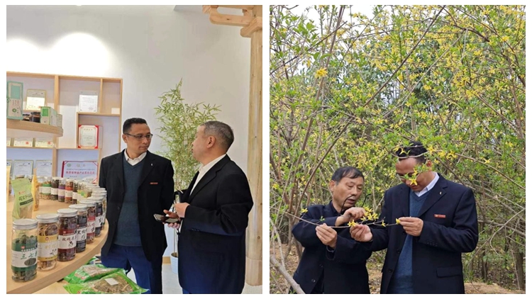 會(huì)后,王學(xué)軍一行參觀了新雨丹中藥材科技產(chǎn)業(yè)園及山茱萸和連翹基地。學(xué)院團(tuán)隊(duì)與企業(yè)工程師團(tuán)隊(duì)圍繞中醫(yī)藥產(chǎn)業(yè)及如何提高連翹產(chǎn)品質(zhì)量和藥效進(jìn)行溝通交流。