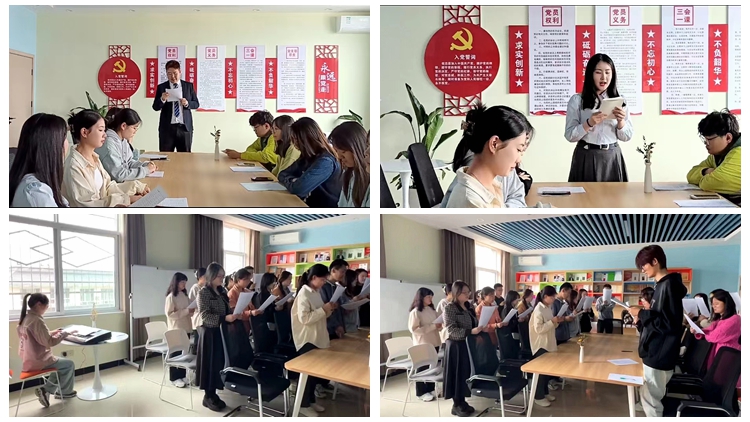 4月10日,學(xué)生第二黨支部開展“以文化之力,作答何以中國”學(xué)習(xí)交流活動(dòng)。黨員代表唐楠楠、韓雨馨帶領(lǐng)大家朗讀了《青春中國》《永遠(yuǎn)跟黨走》《如果信仰有顏色》等優(yōu)秀紅色經(jīng)典篇目。活動(dòng)期間,全體黨員認(rèn)真學(xué)習(xí)了習(xí)近平總書記關(guān)于推進(jìn)社會(huì)主義文化強(qiáng)國建設(shè)的重要論述,入黨積極分子分享了學(xué)習(xí)感悟。全體師生合唱《我和我的祖國》,將活動(dòng)氛圍推向了高潮,通過歌聲表達(dá)出對(duì)黨、對(duì)祖國的無限贊美和滿腔熱愛。