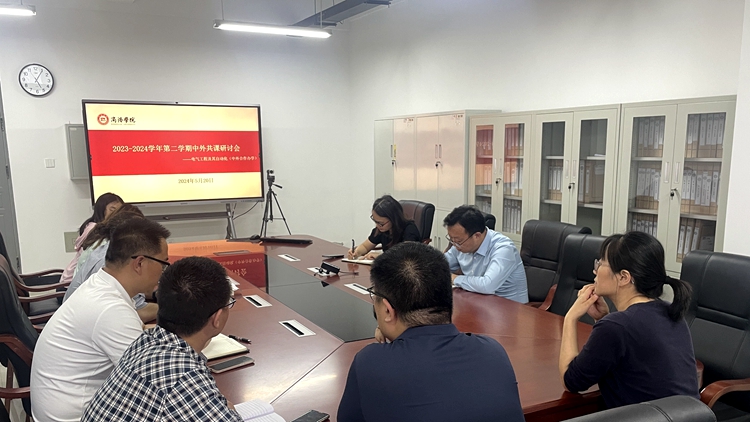 5月20日下午,電信學(xué)院在丹江校區(qū)召開2023-2024學(xué)年第二學(xué)期中外共課研討會(huì)。電信學(xué)院院長(zhǎng)袁訓(xùn)鋒,副院長(zhǎng)李亞文,外事秘書劉雅雯,外籍教師Shehab Salem以及全體共課教師參加會(huì)議。會(huì)議由電氣系主任張商州主持。