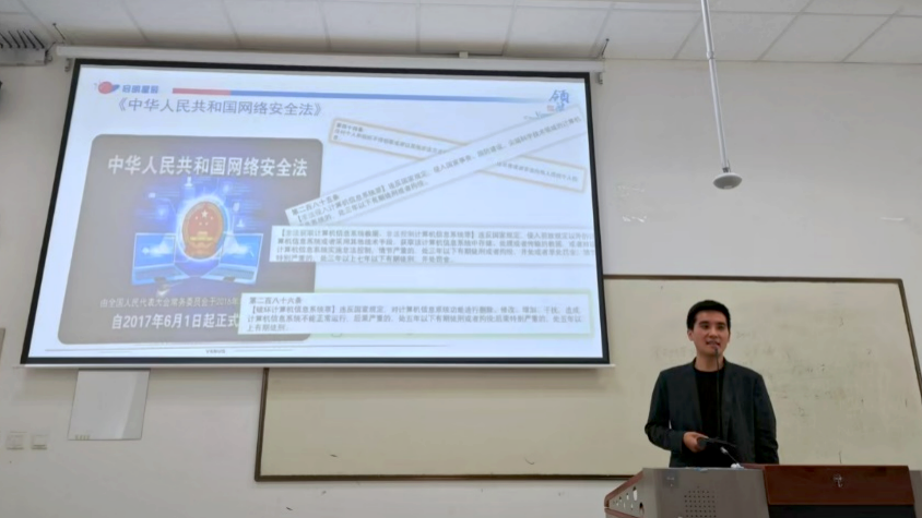 講座共分為“網(wǎng)絡(luò)安全熱點事件”“信息安全與國家戰(zhàn)略”“中華人民共和國網(wǎng)絡(luò)安全法”“信息安全等級保護測評”“啟明星辰核心業(yè)務(wù)”“網(wǎng)絡(luò)安全人才現(xiàn)狀”六個部分內(nèi)容。孫明從近期發(fā)生的幾起重大隱私泄露事件,包括數(shù)據(jù)泄露、個人信息被非法買賣等熱點新聞著手,使在場師生意識到網(wǎng)絡(luò)安全問題的普遍性、嚴(yán)重性、緊迫性。同時,他對《中華人民共和國網(wǎng)絡(luò)安全法》進(jìn)行了深入解讀,詳細(xì)介紹了法律的主要條款、立法目的和實施意義。最后,孫明分析了當(dāng)前網(wǎng)絡(luò)安全人才的市場需求、培養(yǎng)現(xiàn)狀及發(fā)展趨勢。他指出,隨著網(wǎng)絡(luò)技術(shù)的快速發(fā)展,網(wǎng)絡(luò)安全人才短缺的問題日益凸顯。他鼓勵在座的學(xué)生們積極投身網(wǎng)絡(luò)安全領(lǐng)域,提升自身技能,為國家的網(wǎng)絡(luò)安全事業(yè)貢獻(xiàn)力量。同時,他還分享了啟明星辰在人才培養(yǎng)和職業(yè)發(fā)展方面的舉措,為學(xué)生們指明了前進(jìn)方向。