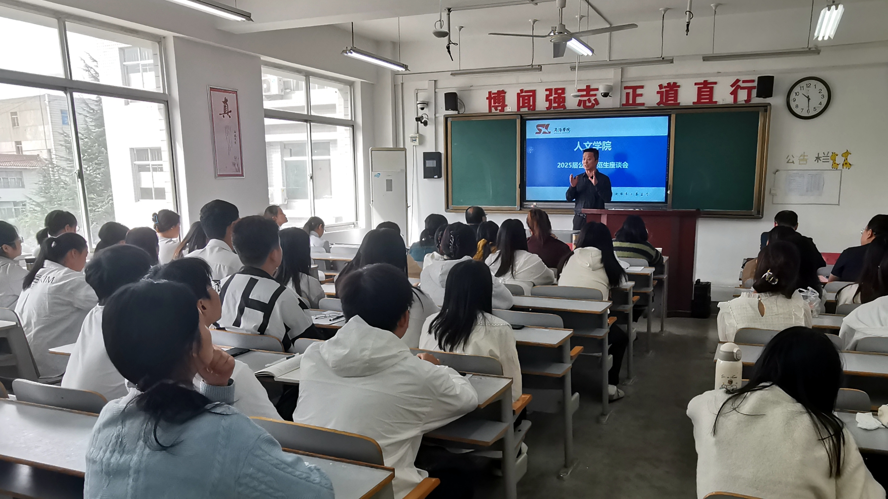 為進(jìn)一步提高地方公費(fèi)師范生教育教學(xué)質(zhì)量,促進(jìn)學(xué)生未來(lái)職業(yè)發(fā)展,10月11日,人文學(xué)院舉辦了以“勤學(xué)·擔(dān)當(dāng),聚力·未來(lái)”為主題的2025屆地方公費(fèi)師范生座談會(huì)。人文學(xué)院黨委書記高擴(kuò)昌、副院長(zhǎng)馬英群、漢語(yǔ)言文學(xué)系主任閔秋潔、全體輔導(dǎo)員、漢語(yǔ)2105班全體學(xué)生以及其他年級(jí)公費(fèi)師范生代表參加了座談。會(huì)議由黨委副書記王剛主持。