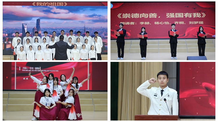 在“誦一段詩詞”環(huán)節(jié),學(xué)院齊桐等人獻(xiàn)上詩朗誦《崇德向善,強(qiáng)國有我》,王向煜帶來演講《立德樹人守初心,強(qiáng)國有我譜華章》,歌頌道德模范們堅(jiān)定的理想信念、不懈的奮斗精神。學(xué)習(xí)完道德模范事跡視頻,經(jīng)管學(xué)子通過舞蹈《萬疆》,用最浪漫的方式表達(dá)了對(duì)道德模范的崇高敬意。退伍學(xué)生代表?xiàng)钫衽d帶領(lǐng)全體同學(xué)鄭重宣誓,承諾以奮斗的青春擔(dān)當(dāng)強(qiáng)國重任,書寫無愧于時(shí)代的華章。