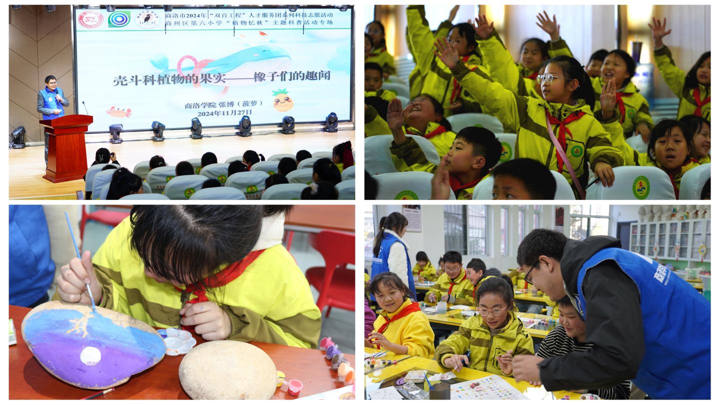 11月27日、29日,我?!鞍肯柚碇拘嘘兾鳌贝髮W(xué)生科技志愿服務(wù)項(xiàng)目“商洛學(xué)院流動(dòng)科技館”團(tuán)隊(duì)攜手學(xué)校學(xué)生社團(tuán)“秦嶺生態(tài)研學(xué)營(yíng)”舉辦自然生態(tài)主題科普進(jìn)校園活動(dòng)。商州區(qū)第六小學(xué)450余名師生及我校10名青年志愿者參加活動(dòng)。
