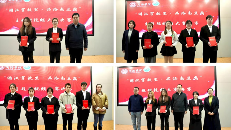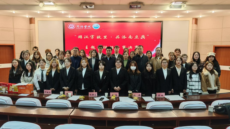 12月1日,商洛直播產(chǎn)業(yè)研究院以“游漢字故里 品洛南豆腐”為主題的首屆主題短視頻大賽決賽在圖書館一樓報告廳順利舉行。洛南縣統(tǒng)戰(zhàn)部部長楊新良、洛南縣文化和旅游局副局長馮娜、商洛學院教務處處長王怡、商洛直播產(chǎn)業(yè)研究院執(zhí)行院長房琳、商洛學院人文學院新聞傳播系主任逯祺、商洛市電子商務平臺負責人譚曉奔等6位校內(nèi)外專家擔任評委。經(jīng)過激烈角逐,人文學院“對對對隊”和經(jīng)管學院“豆腐三大隊”兩個團隊獲得大賽一等獎。