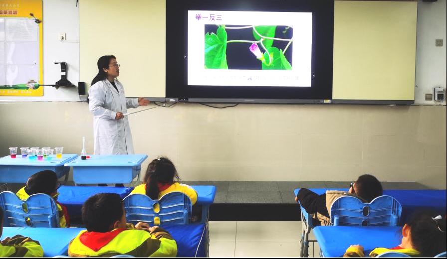 為深入貫徹習(xí)近平總書記關(guān)于科技創(chuàng)新和科學(xué)普及的重要論述,全面貫徹落實《全民科學(xué)素質(zhì)行動計劃綱要》,激發(fā)青少年對科學(xué)的夢想與追求,12月26日,化材學(xué)院王丹博士和李凱斌副教授受邀走進(jìn)商州區(qū)第六小學(xué)開展《姹紫嫣紅——紫甘藍(lán)變色記》科普展演活動。