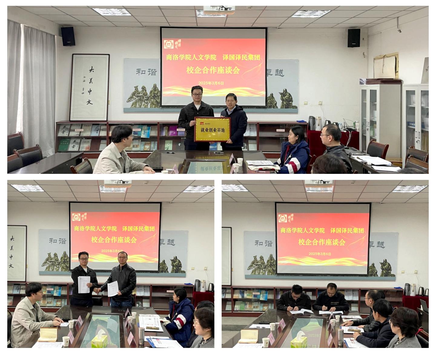 人文學院黨政主要領(lǐng)導和教師代表,譯國譯民集團西北公司總經(jīng)理吳強及相關(guān)工作人員,學校國內(nèi)合作與校友工作處相關(guān)負責人及工作人員參加會議。