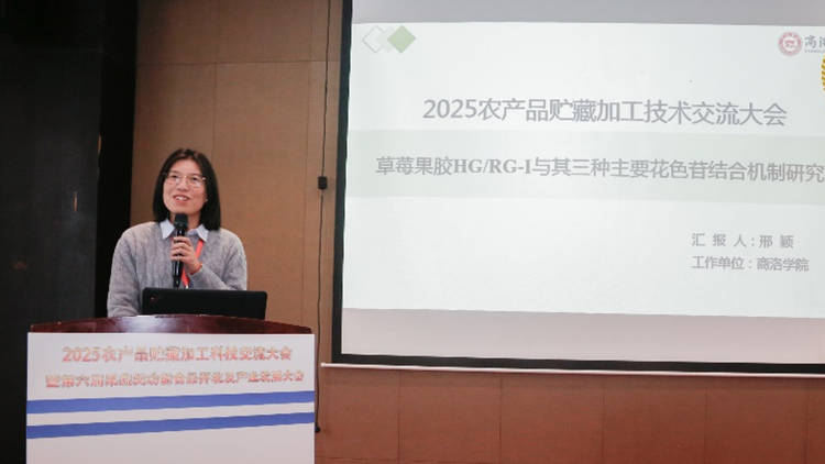 邢穎圍繞“果蔬加工及品質(zhì)調(diào)控”方向,以《草莓果膠HG/RG-Ⅰ組分與其三種主要花色苷結(jié)合機(jī)制研究》為題作主題報(bào)告,分享了該領(lǐng)域的最新研究成果。在匯報(bào)中,她還特別介紹了商洛學(xué)院生物與醫(yī)藥工程碩士點(diǎn)的建設(shè)進(jìn)展與人才培養(yǎng)特色,引發(fā)了與會(huì)專家的廣泛關(guān)注與熱烈討論。