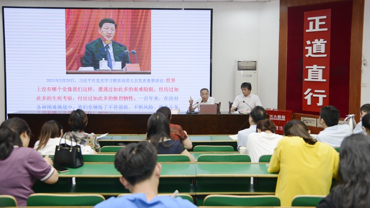 為扎實推進黨史學習教育,進一步引導廣大師生做到學史明理、學史增信、學史崇德、學史力行,6月24日下午,我校教授、市委黨史學習教育宣講團成員王思懷為師生作了題為《百年大黨波瀾壯闊的光輝歷程》的報告,校機關一黨總支、機關二黨總支全體黨員,馬克思主義學院師生代表及統(tǒng)戰(zhàn)成員代表150余人聽取了報告。報告會由組織部副部長陳煒主持。報告中,王思懷以中國共產(chǎn)黨開天辟地、改天換地、翻天覆地、驚天動地的百年輝煌為主線...